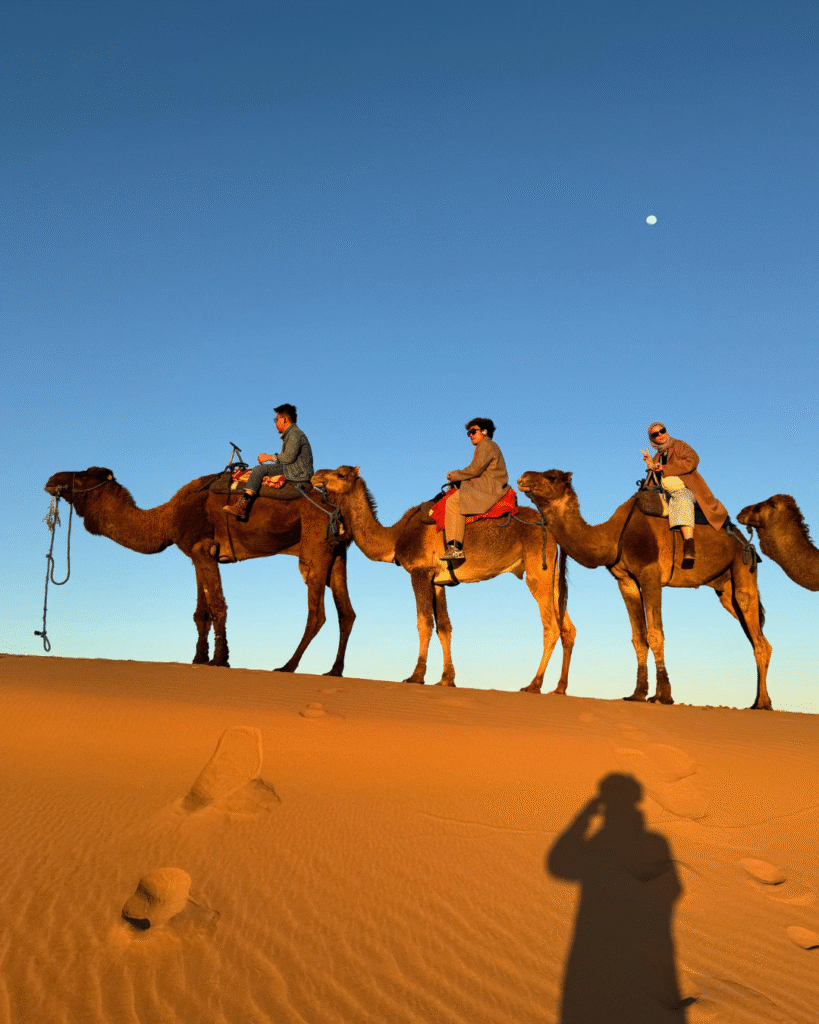 - Opsional: 4×4 Jeep Erfoud Rp 1,500,000/org*Subject to Change, Sunrise Camel Ride Merzouga Rp 1,000,000/org*Subject to Change, Bahai Palace Rp 600,000/org*Subject to Change